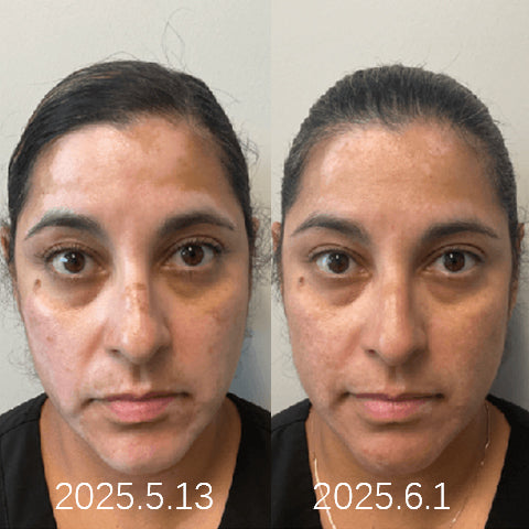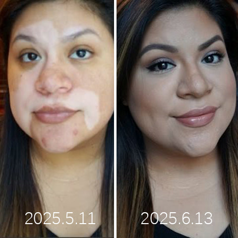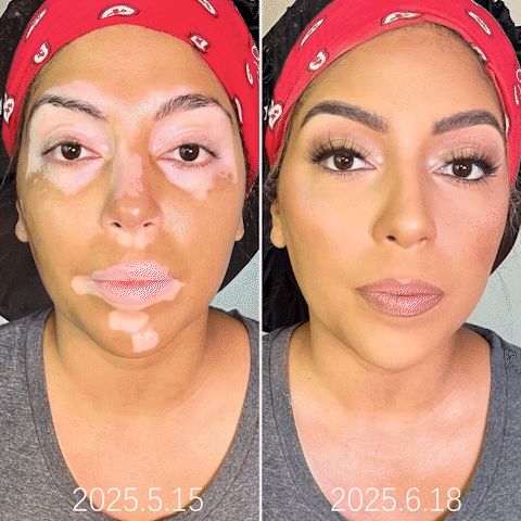 "Nachdem ich jahrelang mit Vitiligo im Gesicht zu kämpfen hatte, war ich erstaunt zu sehen, wie mein natürlicher Hautton zurückkehrte. Die Flecken um meinen Mund und meine Wangen füllen sich wunderbar auf!"
