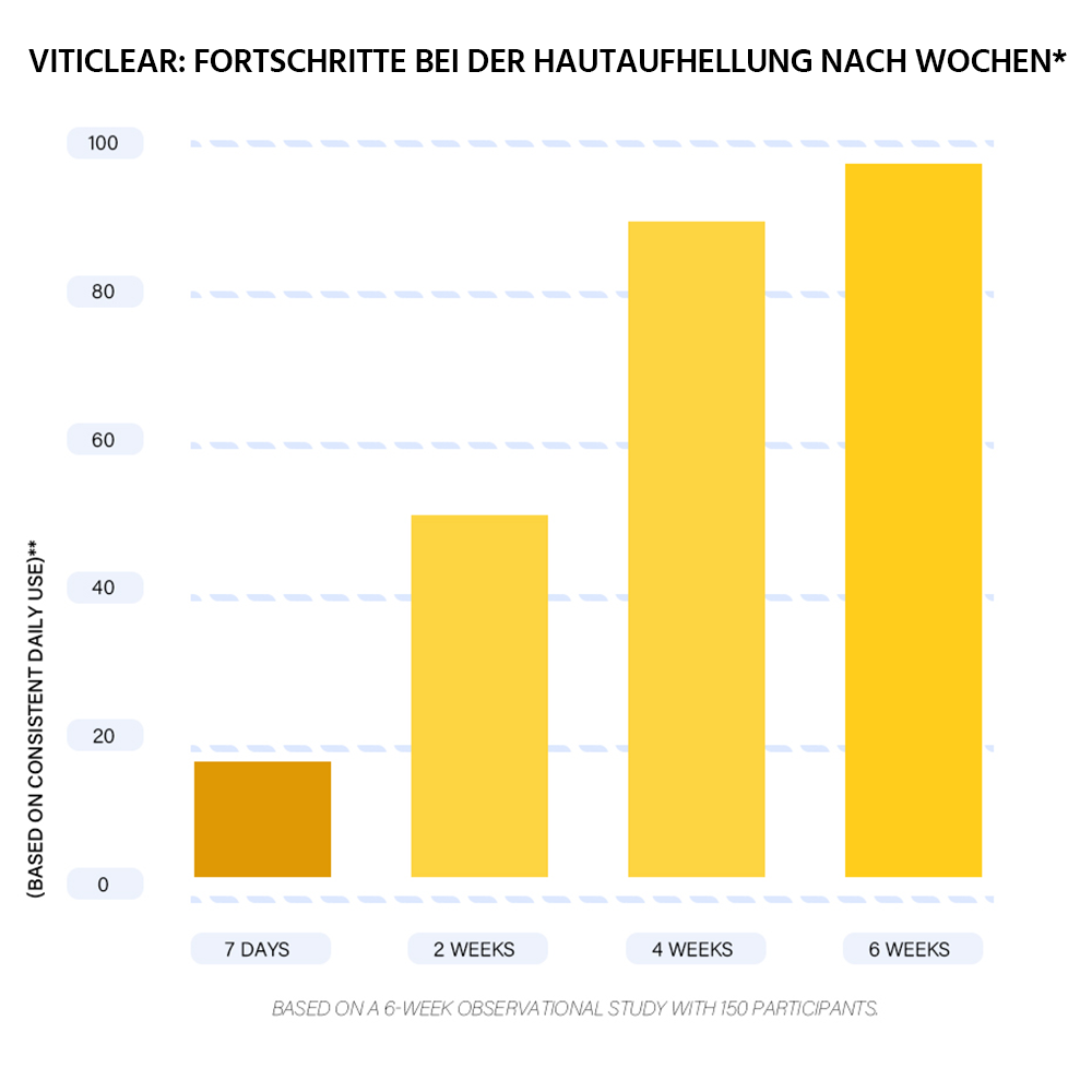 Die meisten Benutzer berichten eine spürbare Verbesserung der Pigmentation und des Tons innerhalb von 7-14 Tagen nach konsistenter Verwendung, mit dramatischeren Veränderungen, die in der 4. Woche auftreten.